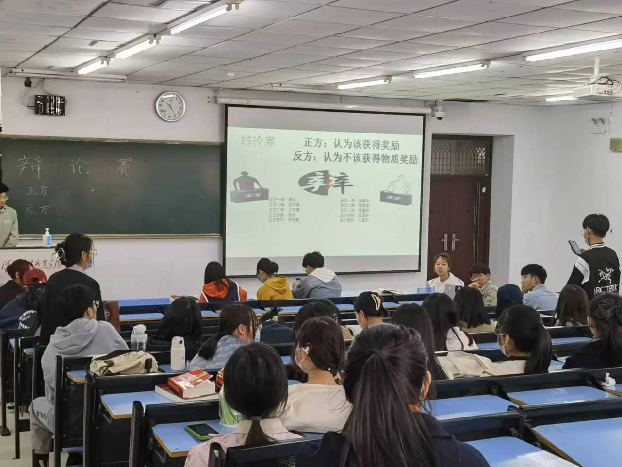 为深入学习雷锋精神,引导同学们树立热爱党、热爱国家、热爱社会主义的崇高理想,弘扬服务人民、助人为乐的奉献精神,2023年3月7日,2022级法律事务(智慧法治方向)1班团支部组织团员青年在17阶梯教室组织开展了以“学习雷锋精神该不该获得物质奖励”为赛题的辩论比赛。
