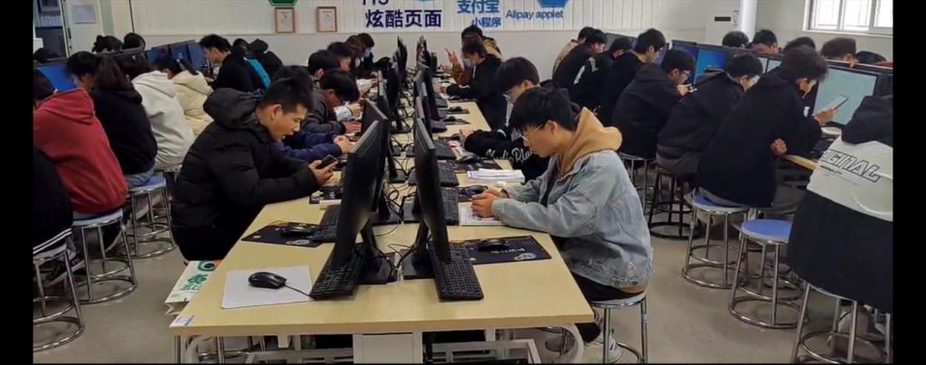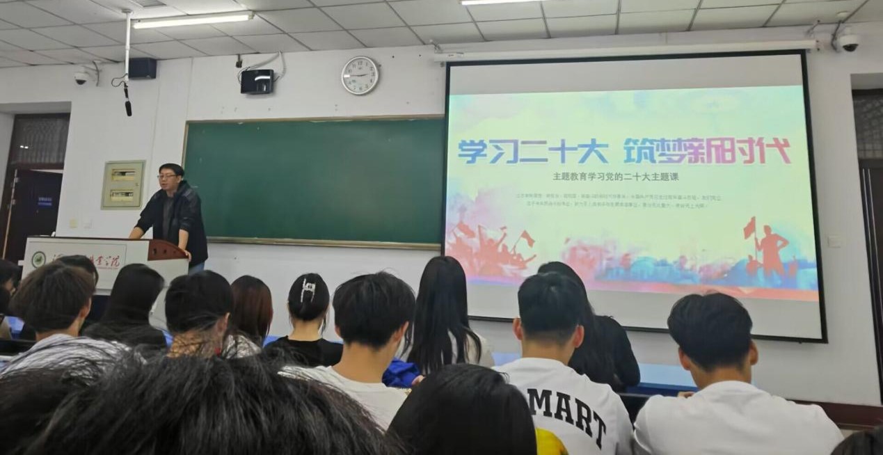 2022级软件技术1班、软件技术2班、2022级安全防范技术1班学生在阶梯20教室进行习近平新时代中国特色社会主义思想主题教育理论学习,重温《党的二十大报告学习》,作为新时代的青年大学生,要以实现中华民族伟大复兴为己任,刻苦学习、努力上进,让青春在党和人民最需要的地方绽放光彩。