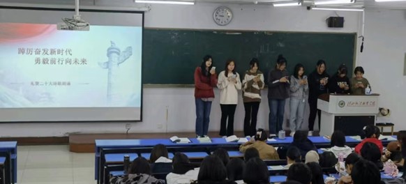 在课前十分钟和晚上的课余时间,通过朗读、讨论等多种形式学习党的二十大报告、论党的青年工作等原文原著,推进学生思想教育入学生头脑,引导学生树立正确的世界观、人生观、价值观,深刻认识自身在意识形态领域的重要责任。