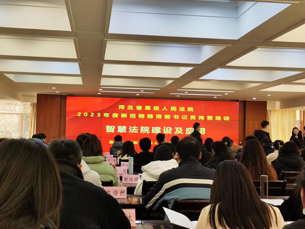 2023年11月24日保定市中级人民法院信息技术中心张娣主任受邀来我院在龙凤湖培训中心举办“智慧法院”讲座,我系智慧法治教研室卢宇、刘林超、李新鹏、张剑四名老师参加培训。