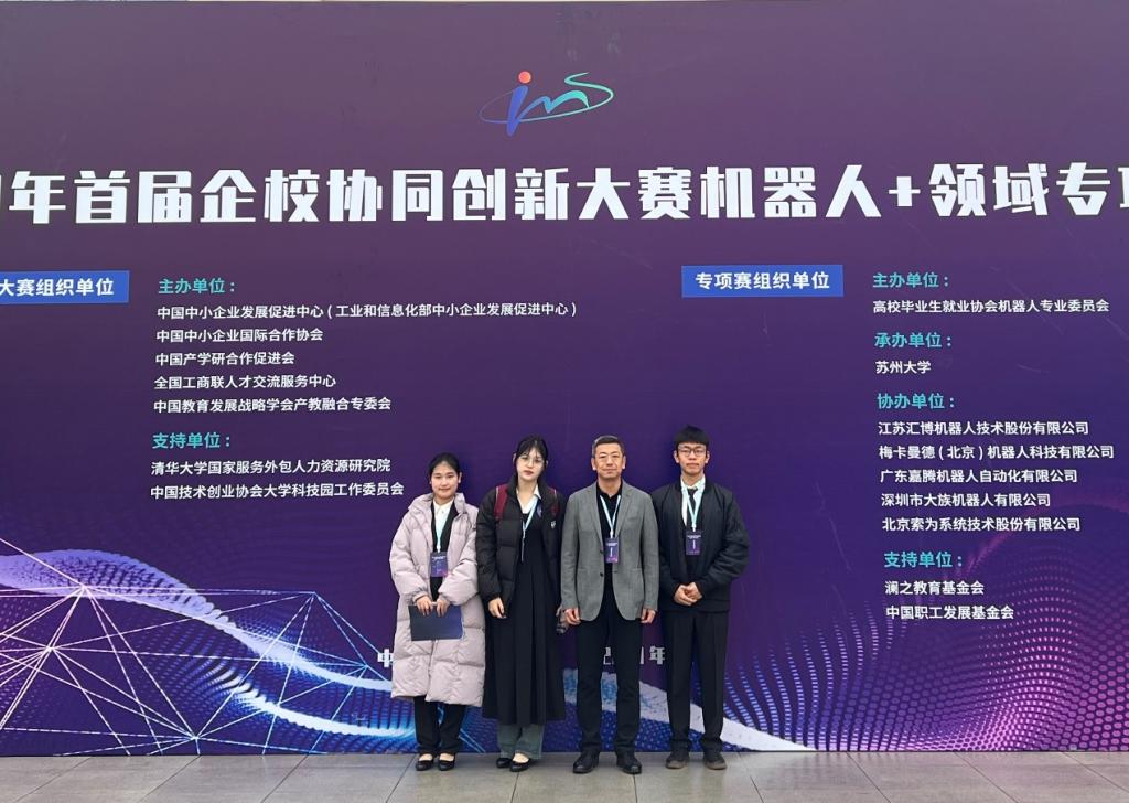 2023年12月9日至10日,由工业和信息化部中小企业发展促进中心举办的中国首届企校协同创新大赛“机器人+”领域专项赛决赛在苏州大学(未来校区)落下帷幕。我系选派唐梦遥(22级安全防范专业)、刘佳明(22级人工智能专业)、梁默然(22级法律事务专业)三名在校生赴苏州,组成AI尚法•法律服务云平台项目代表参加决赛。在“企校”双指导老师的悉心指导下,团队成员积极准备,最终AI尚法•法律服务云平台项目在60个决赛队伍中(本科49支,高职11支)脱颖而出,荣获国赛二等奖。