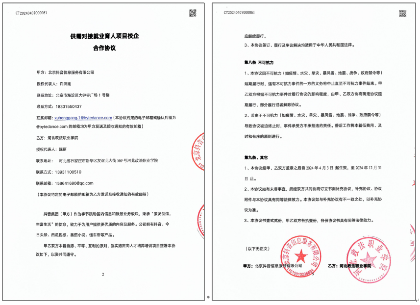 为了进一步提升数字媒体技术专业学生的职业竞争力,帮助学生提升对于数字媒体行业的前沿认知,丰富新媒体实战经验,4月11日,专业与北京抖音信息服务有限公司签订供需对接就业育人项目校企合作协议。